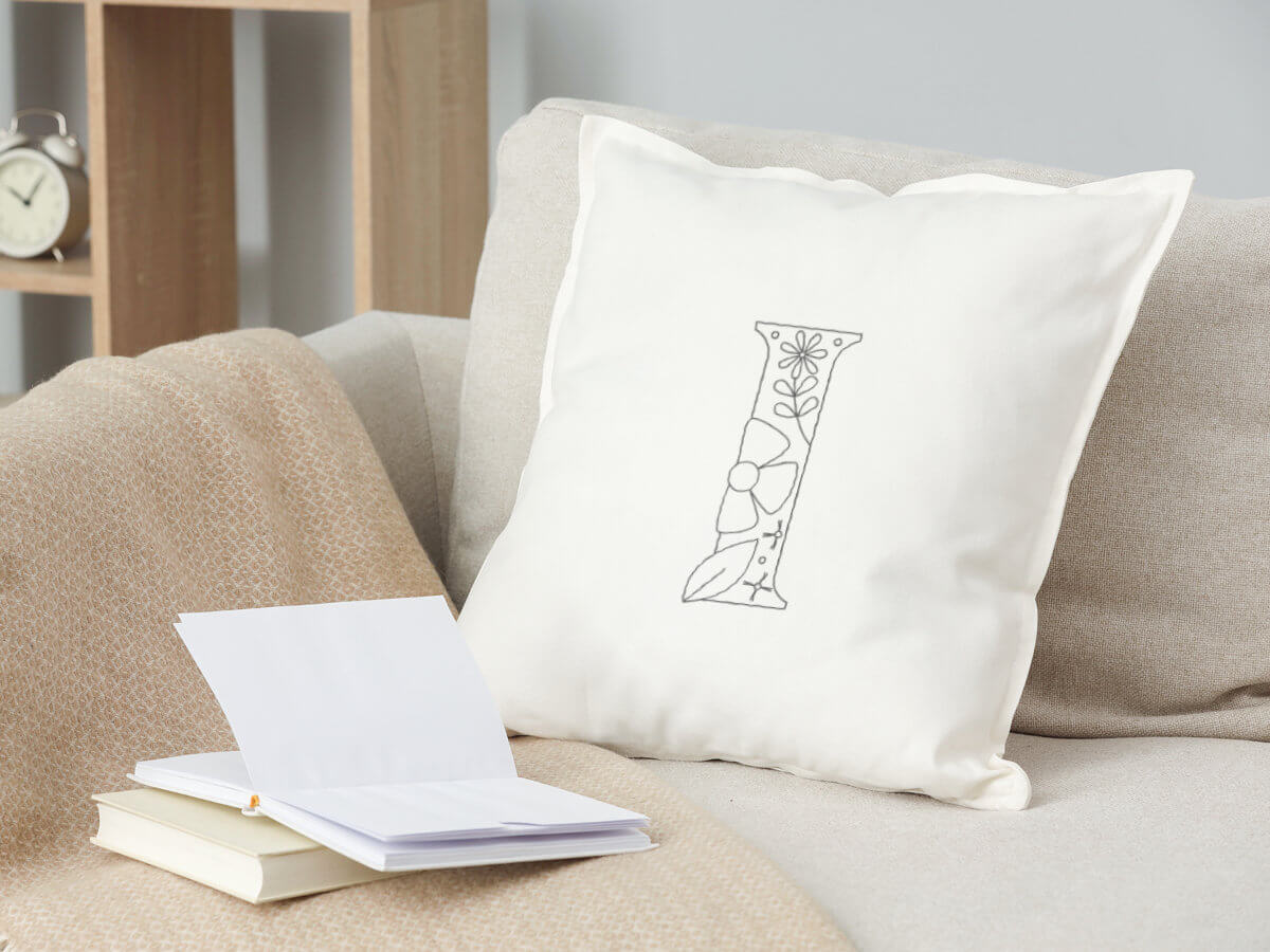 Create a personalized gift with this Floral Letter “I” Embroidery Pattern. This single letter features a wide shape with bold floral accents, making it perfect for monograms, initials, or a small project for someone special.