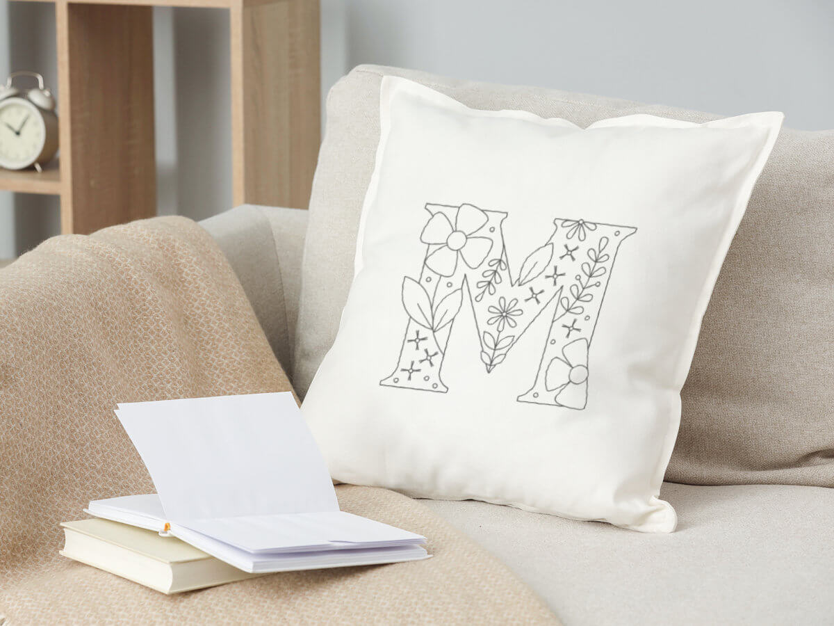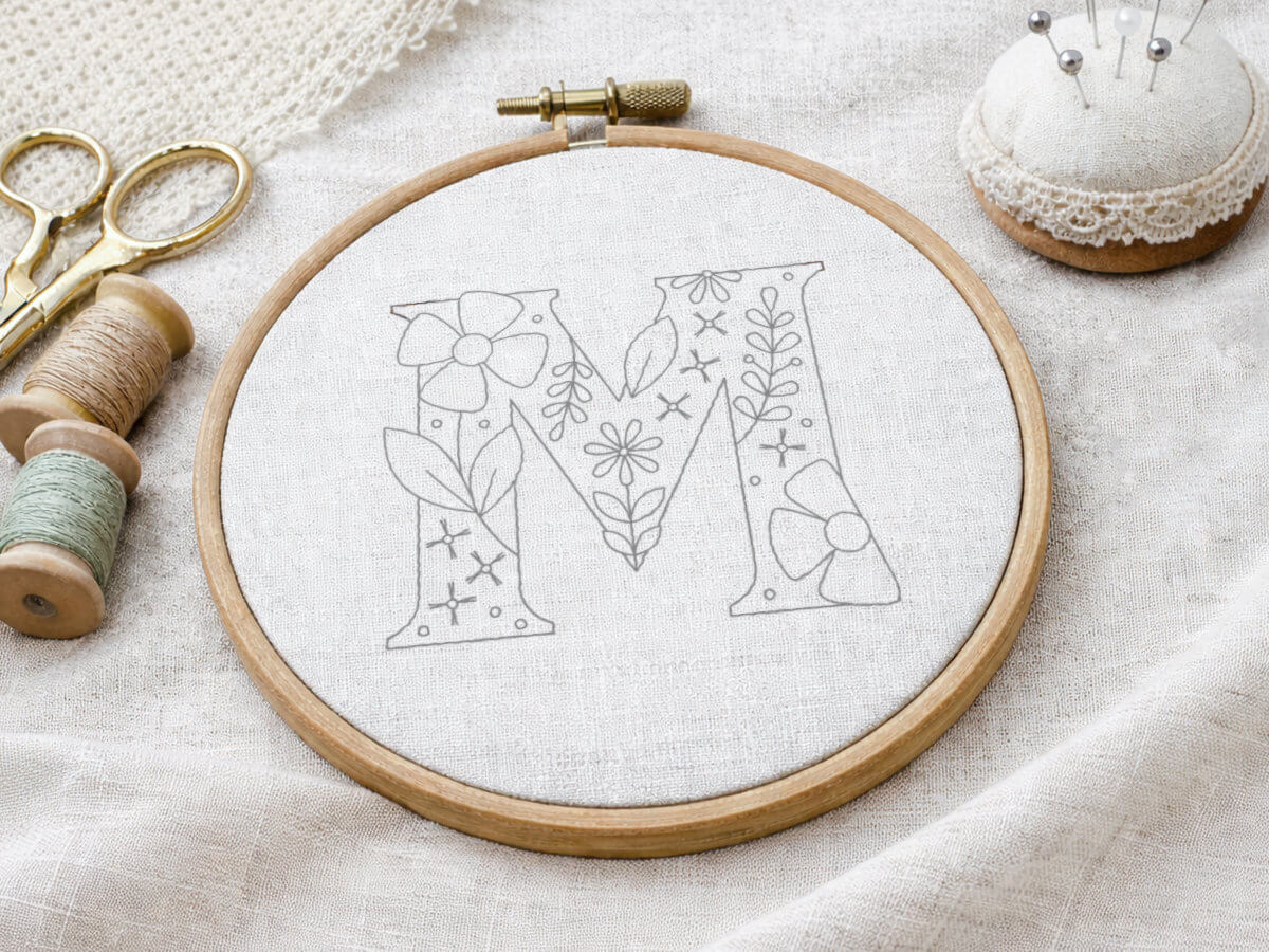 Create a personalized gift with this Floral Letter “M” Embroidery Pattern. This single letter features a wide shape with bold floral accents, making it perfect for monograms, initials, or a small project for someone special.