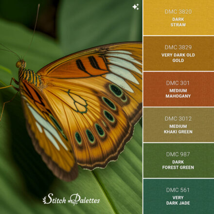 Use the embroidery color chart below to convert this palette between three types of thread.