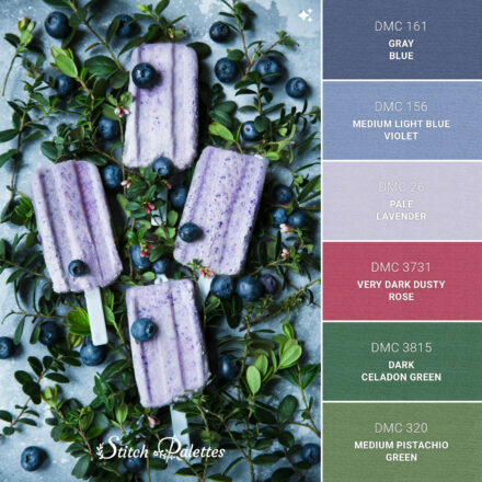 Use the embroidery color chart below to convert this palette between three types of thread.