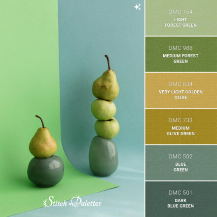 Calm And Peaceful Colors Contrast With Floss Colors Food Needlepoint Shades Green Thread Color Match Retro Mood Color Charts