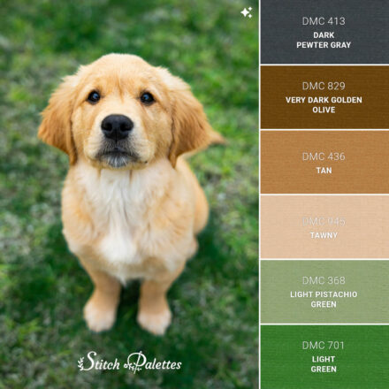 Use the embroidery color chart below to convert this palette between three types of thread.