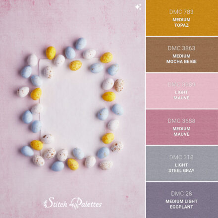 Use the embroidery color chart below to convert this palette between three types of thread.