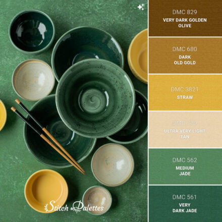 Color palette for your embroidery with the following thread colors: Dark Avocado Green, Very Dark Beige Gray, Medium Beaver Gray, Light Cocoa, Ultra Very Dark Desert Sand, Ultra Dark Dusty Rose