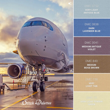 Color palette for your embroidery with the following thread colors: Driftwood, Light Lavender Blue, Ultra Very Light Baby Blue, Light Autumn Gold, Very Light Tan, Medium Mahogany
