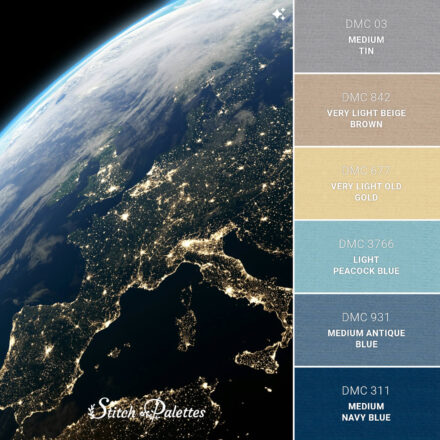 Use the embroidery color chart below to convert this palette between three types of thread.