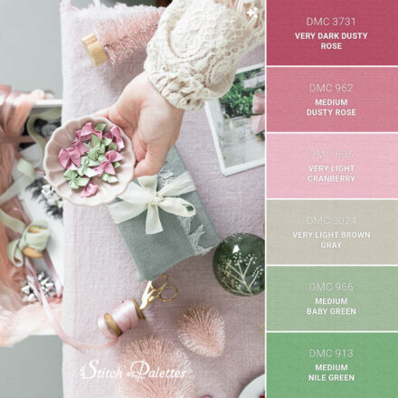 Use the embroidery color chart below to convert this palette between three types of thread.