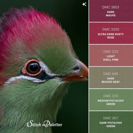 Use the embroidery color chart below to convert this palette between three types of thread.