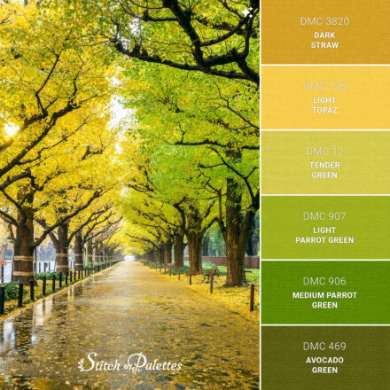Color palette for your embroidery with the following thread colors: Light Pale Yellow, Very Light Topaz, Light Topaz, Medium Light Topaz, Very Dark Straw, Medium Golden Brown